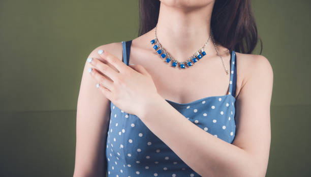 This high, rounded neckline offers a perfect canvas for chunky statement necklaces or layered chains. Since the neckline covers more area, a bold or multi-layered piece can bring attention to your upper chest and add interest to a simple top or dress.